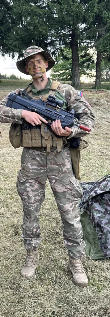 Sem ustanovitelj in CEO, ki je iz vojaške uniforme – dokaz imate na priloženi fotki s neprebojnim jopičom, ki mi je bila dve številki prevelik – pobegnil naravnost v podjetništvo. V poslu streljam ostrimi idejami, ne slepimi naboji birokracije, in z enako trmo, kot sem v vojski nosil nahrbtnik, danes nosim odgovornost za rast našega podjetja – le da je ta misija precej bolj zabavna in brez tistih zgodnjih budnic.